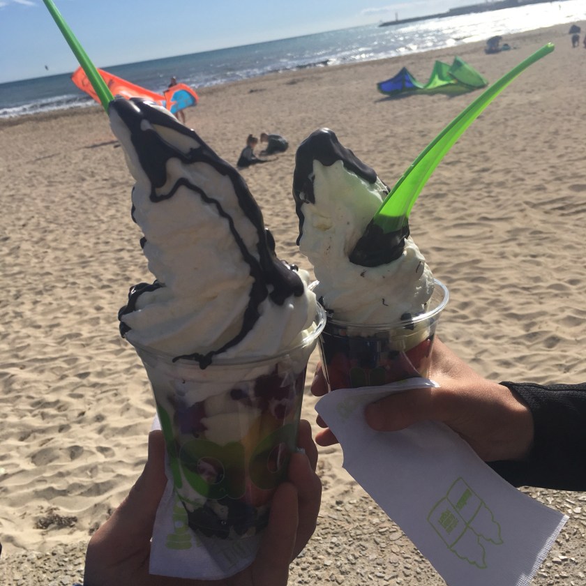 Heute hatten wir unseren Layday bevor morgen die offene Europameisterschaft losgeht. Das heißt, ich werde gegen Radial-Seglerinnen jeden Alters segeln. Den Tag starteten wir perfekt mit einem Frühstück am Strand und etwas Sport. Mittags wurden die Boote poliert und für die Rennen fertig gemacht.