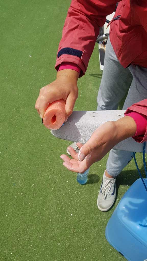 Dann ging es ans Spleißen, Knoten und Leinen einfädeln. Zwei Tage lang bastelten Timo und ich an der Mini. Am Mittwoch stand dann die Überführung nach Svendborg an – das Schiff war quasi einsatzbereit, aber als ambitionierter Regattaseglerin fand ich noch an allen Ecken und Enden Kleinigkeiten, die optimiert werden konnten.