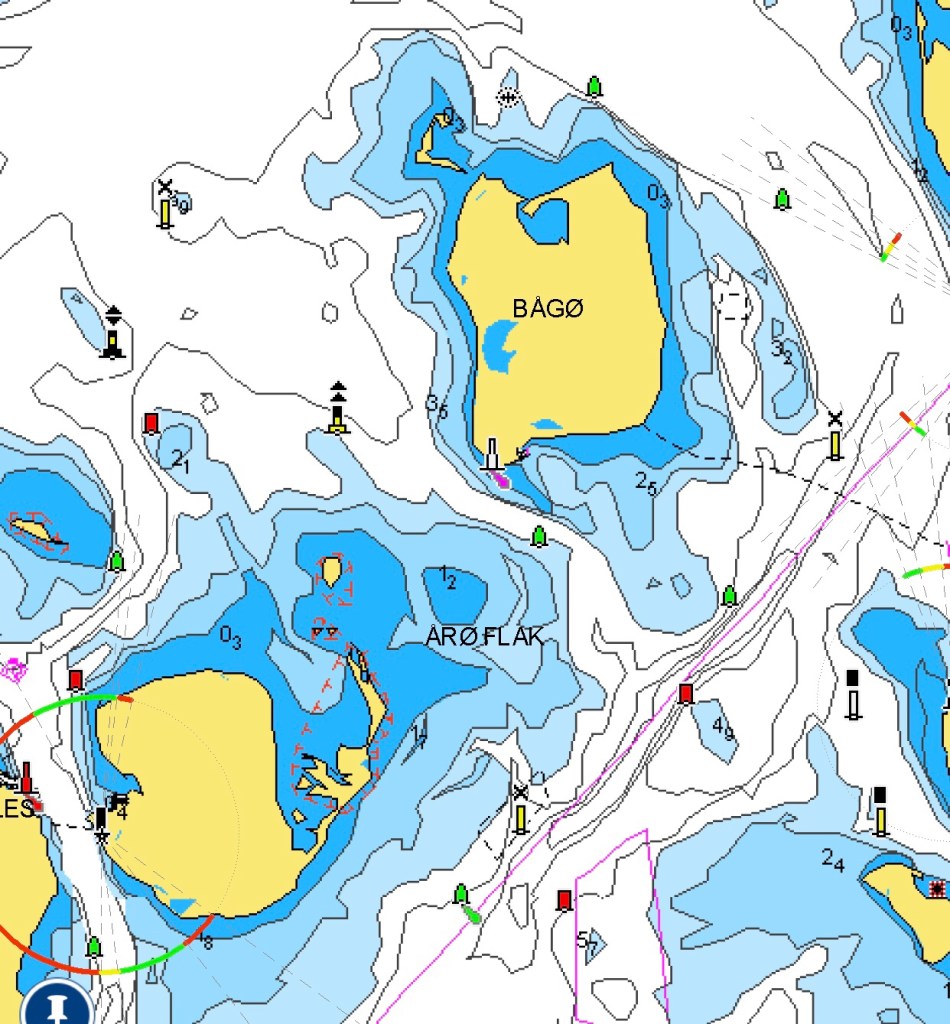 Between Bagö and Aarö there is a narrow passageway surrounded by shallows. When I arrived there, my battery was at 13%… The best solution that I could think of for going through this passage without having to constantly turn on the mobile phone was to follow someone. But that shouldn’t be one of the Seascapes. They have significantly less draught than a Mini and can even pull up their keel.