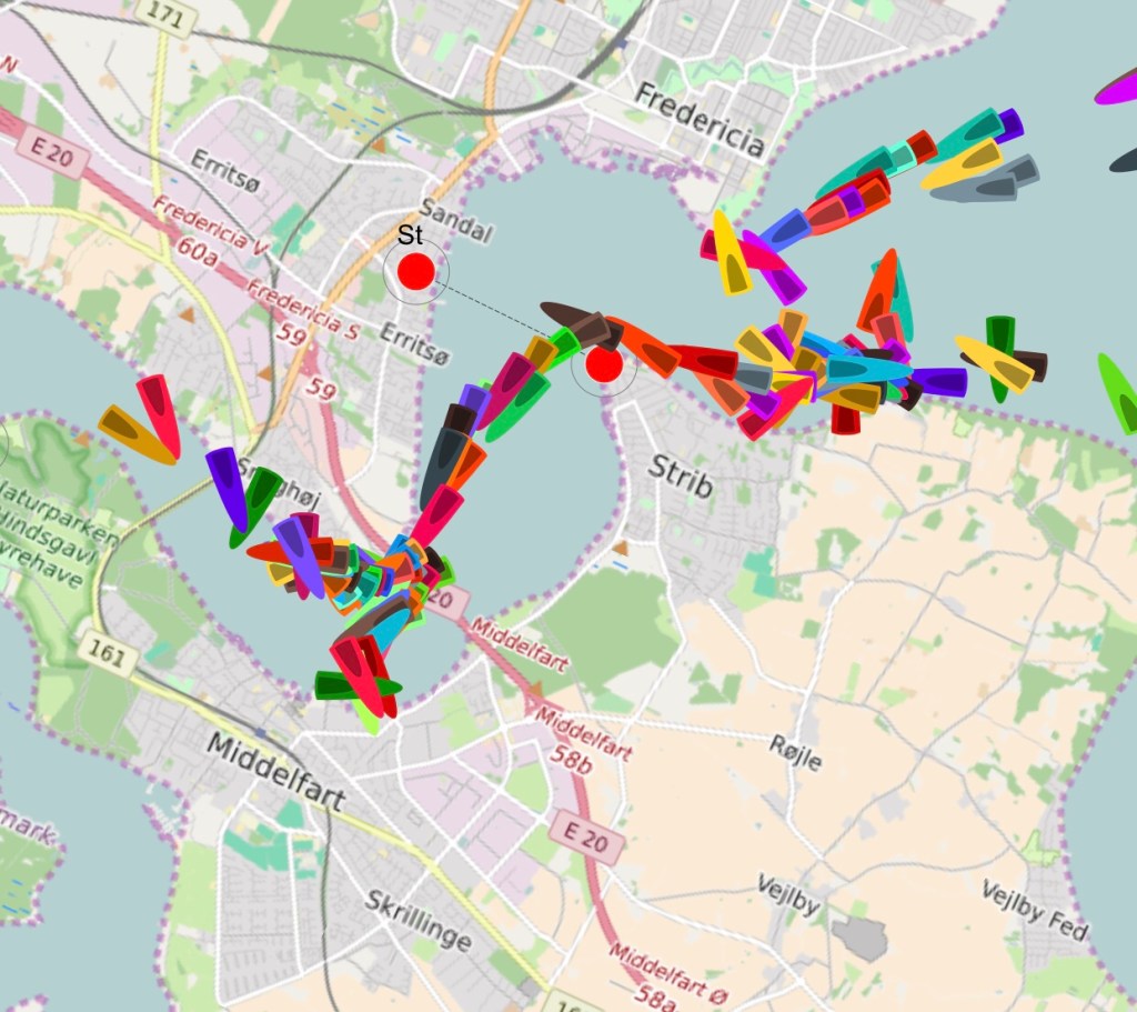 Am frühen Morgen erreichte ich den Eingang um kleinen Belt und freute mich, dass ich Rasmus wieder eingeholt hatte. Der war mit der L30 zwei Starts nach mir gestartet, hatte mich aber zwischendurch schon überholt. Zusammen fuhren wir gegen den Strom bei löchrigem Flautenwind in den kleinen Belt hinein. Hier konnten die kleinen Boote mit weniger Tiefgang, zu denen ich mich auch zählte, ihren Vorteil ausspielen. Dichter unter Land im flacheren Wasser ist nämlich weniger Strom. Irgendwann fand ich eine gute Lane mit wenig Strom gegenan und etwas Wind und konnte mich von den Booten um mich herum absetzen.
