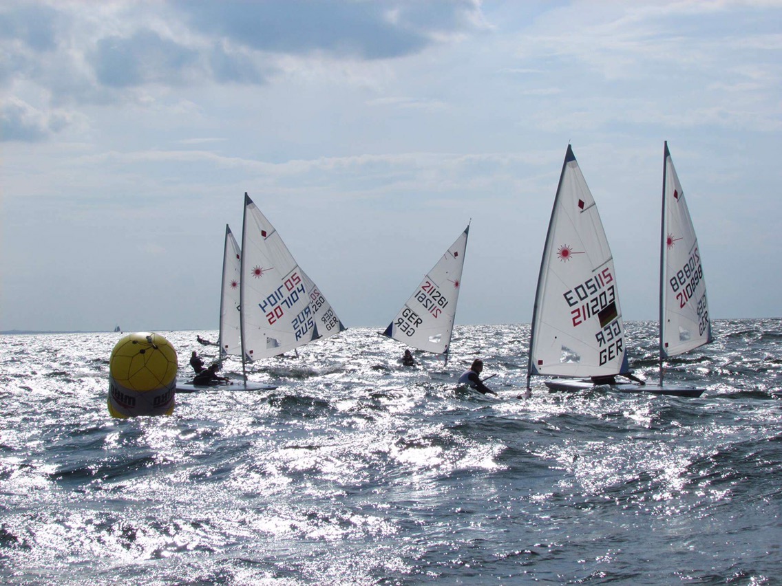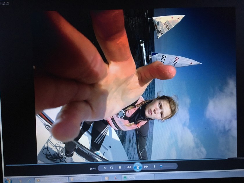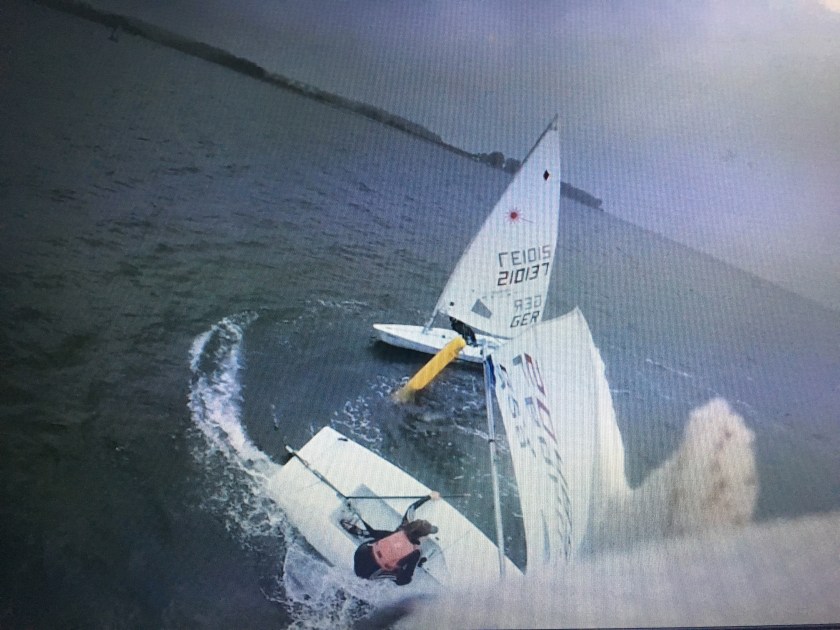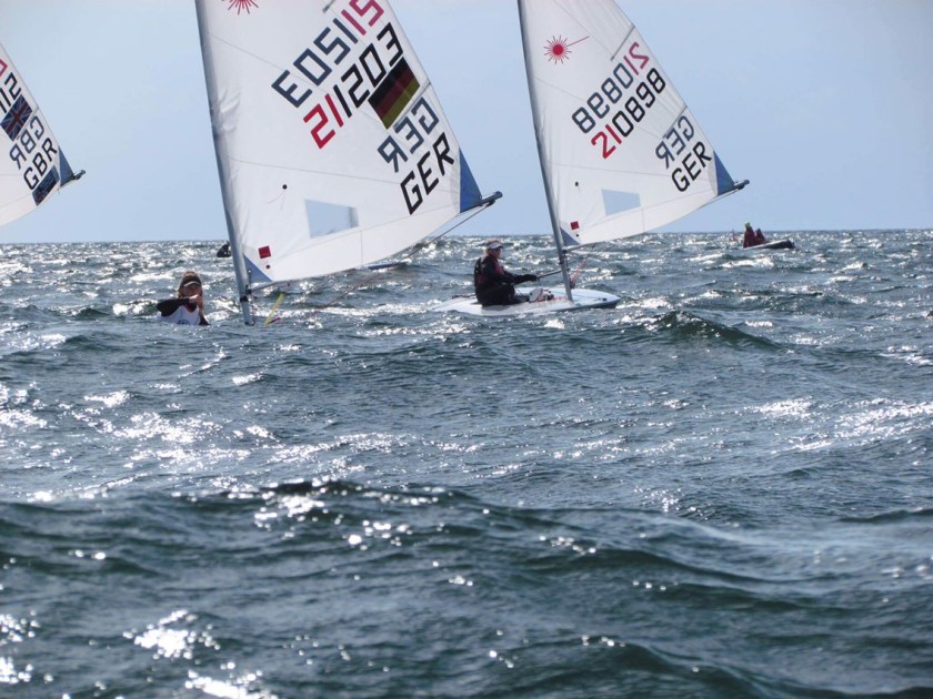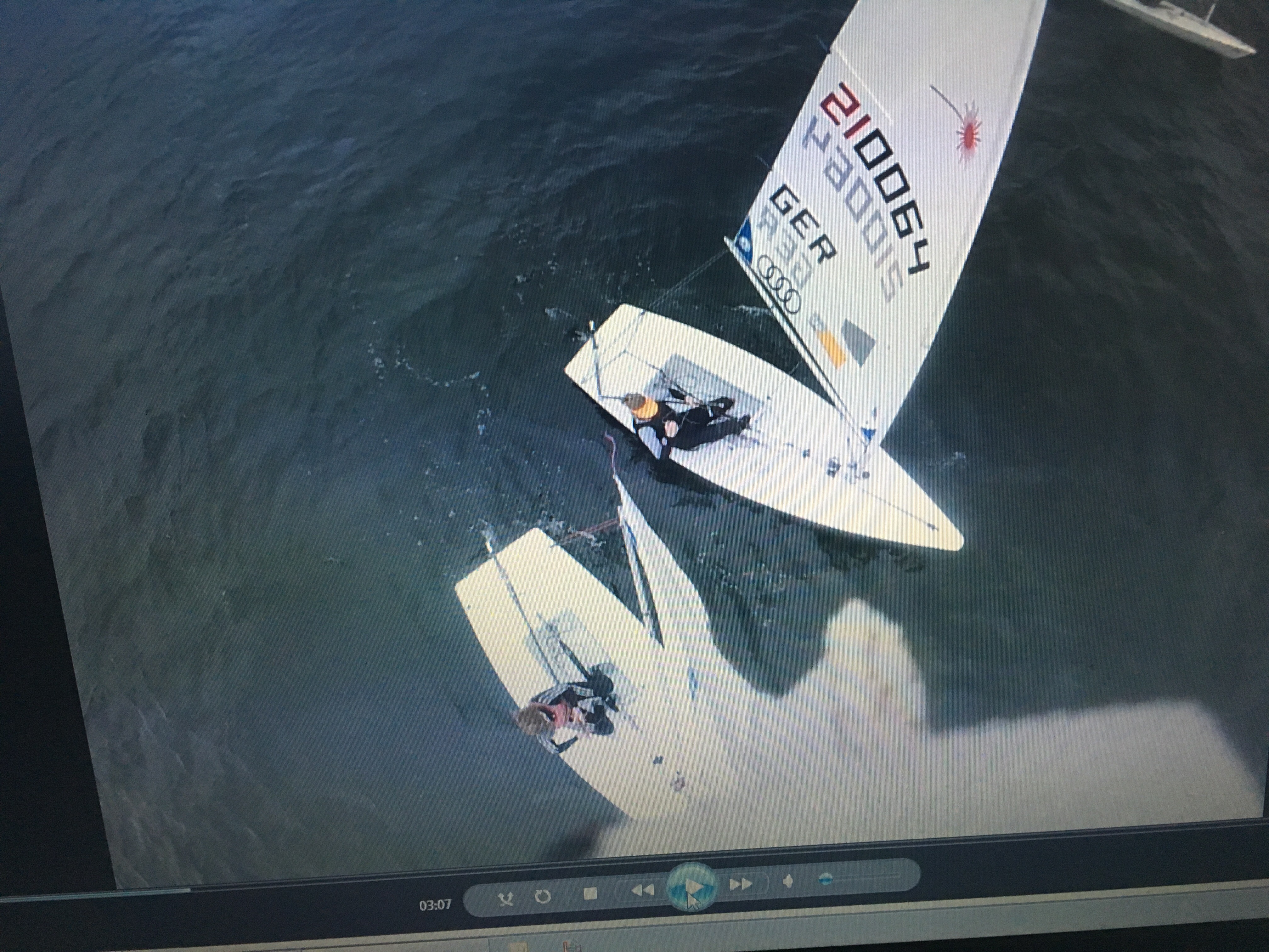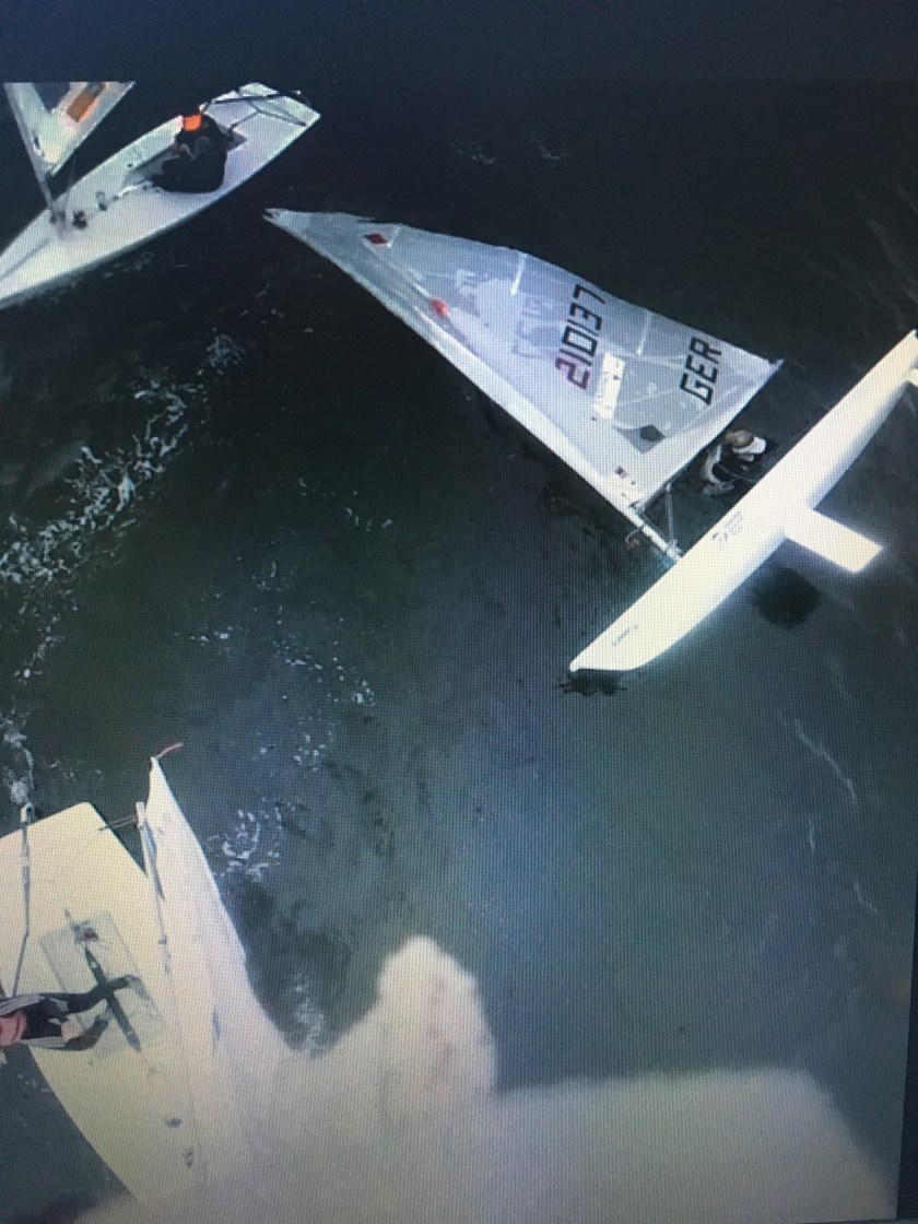 Die Devise des Tages lautete: Starten und Warten. Wir brauchten mindestens 5 Startversuche für 2 1/2 Rennen (das erste Rennen musste ein zweites Mal gestartet werden, nachdem es wegen eines Winddrehers und weil die meisten um die falsche Luvtonne gefahren waren, abgebrochen wurde), von den Radial Jungs, deren gefühlt nicht endende Startversuche wir erstmal abwarten mussten, mal ganz zu schweigen.