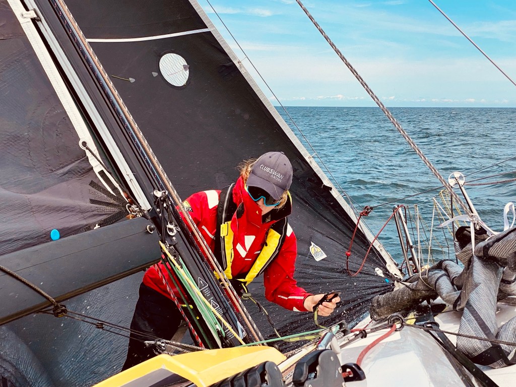 My first offshore experience was a 30hr doublehanded training in early May 2020 in the Baltic Sea with violent upwind beating during the night. My first race was a week later the Baltic 500. After a windy and freezing cold frontal night with steep waves in the Kattegat and broaching several times which many other competitors avoided by retiring from the race, we could not finish the race due to a design flaw in the boat that saw us with a breaking keel box. But we made the right decision and brought the boat to the next Harbour instead of inflicting further damage on a borrowed boat and entering a dangerous situation. After that my partner was worried that I didn’t want to do any more offshore sailing however, that regatta ignited a big passion in me. I started practicing 20min naps, sailing by myself, boathandling and learned everything that I could find about boat electronics, weather, routing and navigation. In 2021 that dedication paid off as I was recruited on a Clubswan 50 team as navigator.