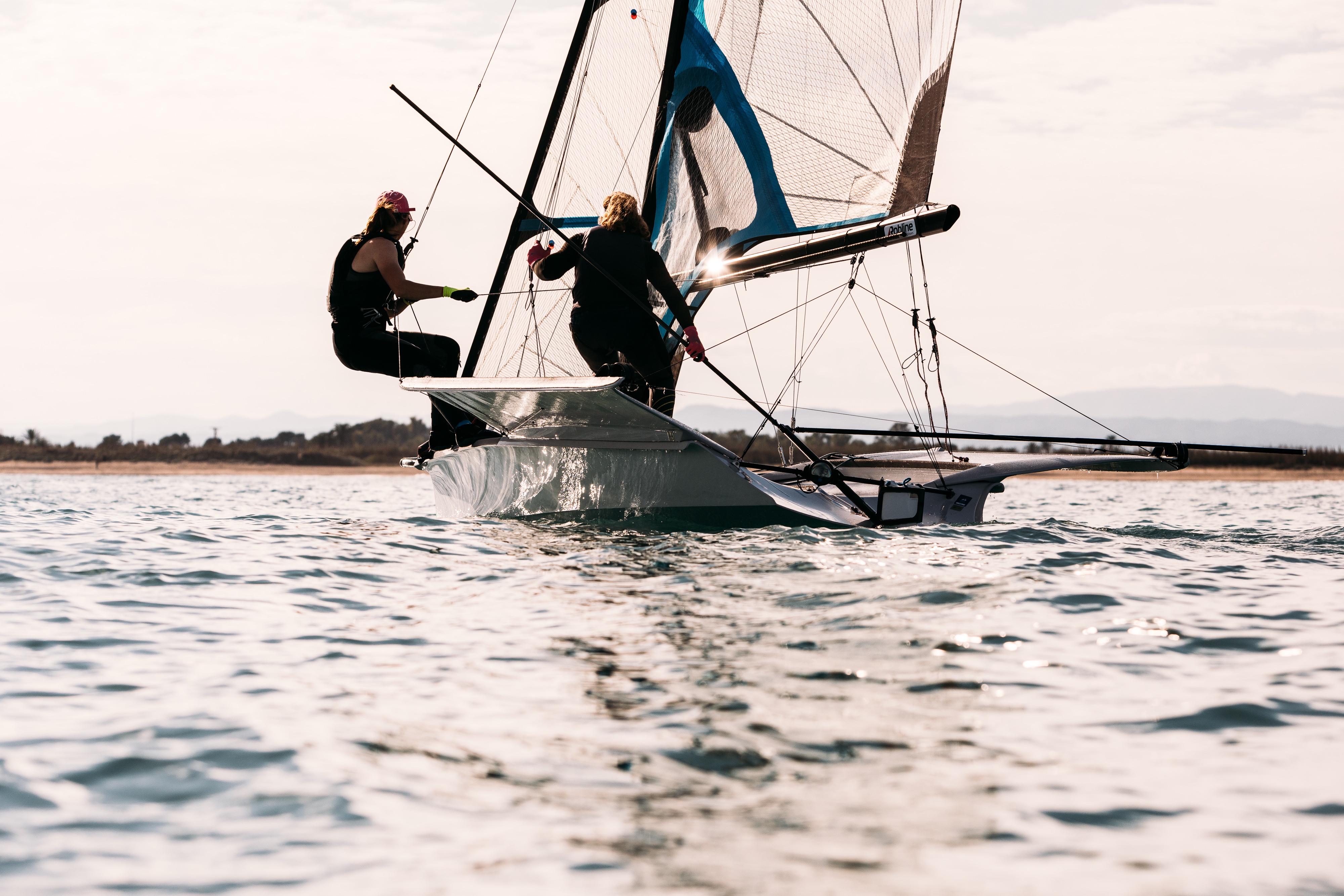 With our F18 program Ravi and I want to encourage female sailors to join the F18 class. We are working on a small jib proposal for the class to promote smaller/lighter teams. Currently the minimum class crew weight is 150kg and if you are underweight teams have to carry corrector weight. With a smaller jib rule lighter teams would be allowed to compete without having to carry corrector weights and would have more fun and perform better in windy conditions maintaining control of the boat.