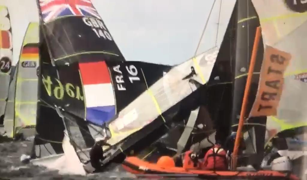 Am letzten Tag der Regatta waren wir Gesamtdritte und es war nur noch ein Rennen zu segeln. Die zweitplatzierte „OneGroup“ hatte so viele Punkte Vorsprung, dass wir sie kaum noch überholen konnten. Also lag unser Fokus darauf, uns die Viertplatzierten vom Leib zu halten. Das änderte sich jedoch schlagartig, als nach dem Start durch meine Handfunke dröhnte: